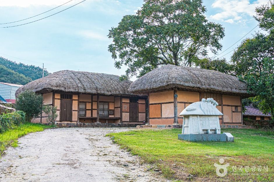 1942년 부친이 죽은 후 친척이 개조하여 거주하다가 1970년 경부터는 사람이 살지 않은 채로 방치되었고 2001년 복원되었다. 생가 곳곳에는 그의 시와 글이 새겨진 큰 바위가 세워져 있으며 정면 4칸, 측면 2칸의 초가지붕 본채, 정면 3칸, 측면 2칸의 헛간이 있는 초가지붕 아래채가 서로 마주 보고 있다.